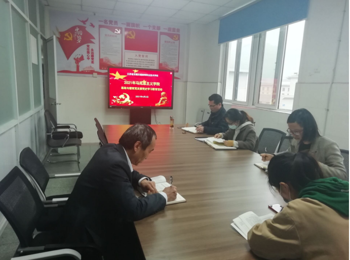 2021年4月2日下午思政教研室党支部在部门会议室进行了党史学习教育,思政教研室党支部全体党员同志参加了本次学习