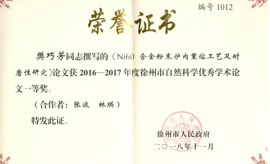 2016-2017年度徐州市自然科学优秀论文一等奖