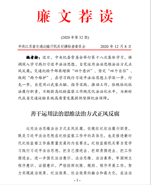 廉文荐读第32期——善于运用法治思维法治方式正风反腐