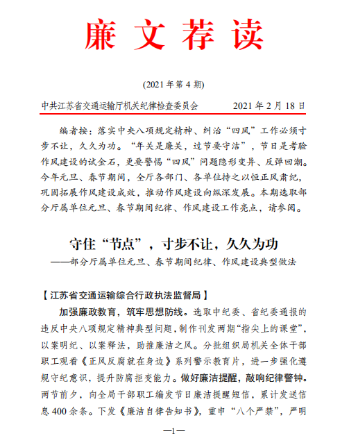 廉文荐读2021年第4期——守住节点,寸步不让,久久为功