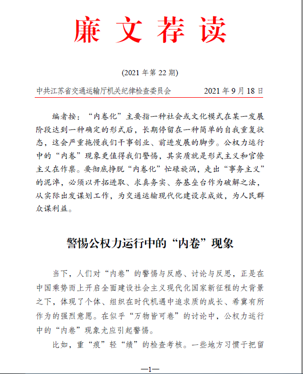 2021年廉文荐读第22期——警惕公权力运行中的“内卷”现象