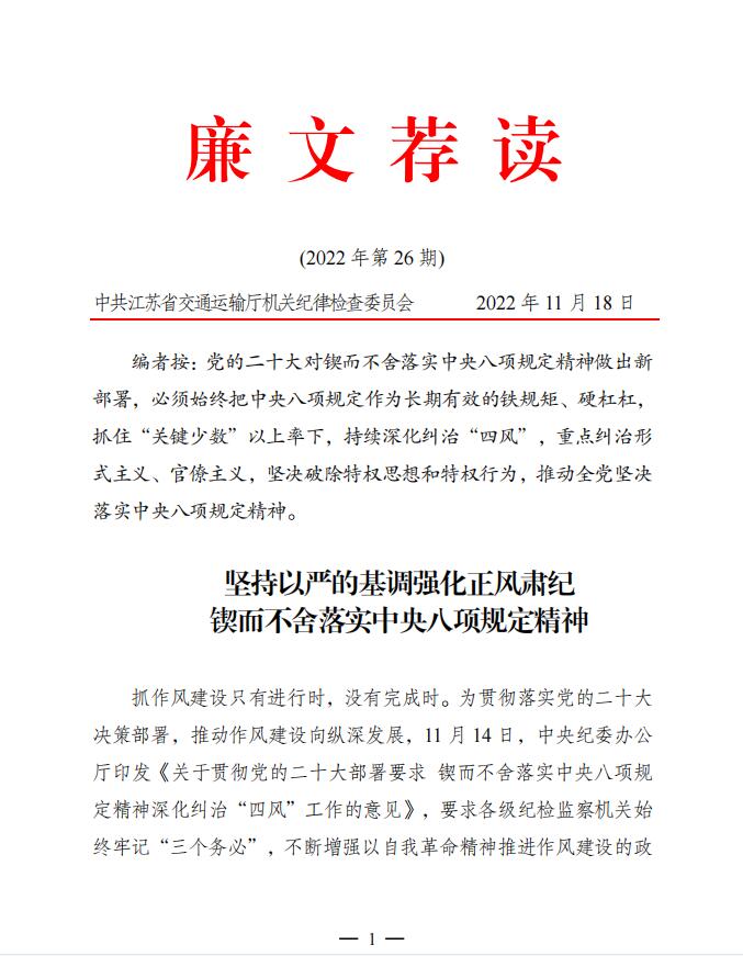 2022年廉文荐读第26期——坚持以严的基调强化正风肃纪