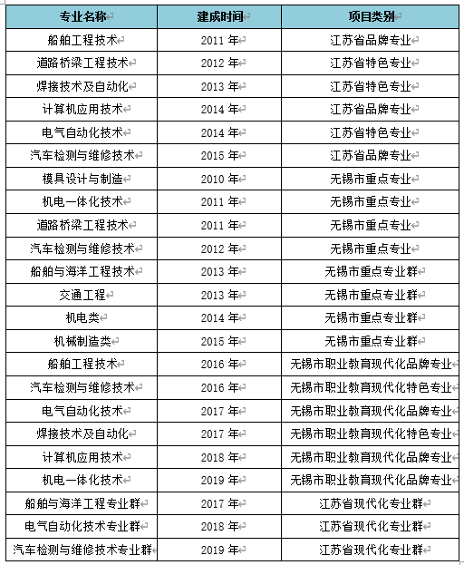 学校重点专业建设一览表