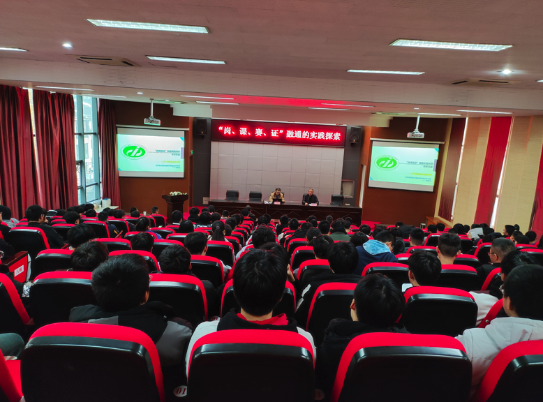 12月8日下午,学校邀请汽车工程学院郑军武院长、副教授,在校学术报告厅为全校师生做《“岗、课、赛、证 ”融通的实践探索》专题讲座,近180名师生到场聆听。讲座由科技与合作处处长尹爱华主持。