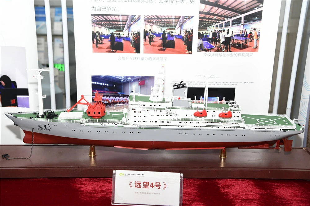 此次手工作品展种类繁多,美轮美奂。每个展区里,展台上一份份精致小巧,精雕细琢的作品皆赢得广大师生的驻足观赏、评鉴。有出自首届校园手工制作大赛的优秀作品《羊毛毡》、《苏州园林》、《江南小屋》、《盒子剧场》,也有学生社团刻纸社的《连年有鱼》、《金狗纳福》,拙巧手工坊的《九霄云鹤头饰》、《玫瑰刺绣》,绿苑文学社的《蓝晒作品》、《扎染作品》,船模社的《青岛舰》、《远望4号》等近百幅作品。每件作品都独具匠心、构思巧妙,参观的师生对各式各样的造型和惟妙惟肖的作品无不啧啧称赞。