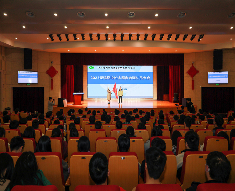 为提高2023无锡马拉松志愿者服务技能,做好志愿服务保障工作,3月8日下午,学校在礼堂举行了2023无锡马拉松志愿者培训动员会,来自全校七个二级学院的340余名学生志愿者参加会议。会议由校团委副书记孙霞主持。