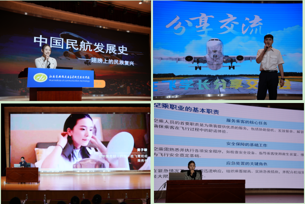 蓝天思政课以“航空赋能成长,青春担当使命”为核心,特邀六位民航资深从业者联袂授课,从职业认知到国家使命,从行业实践到文化传播,为学子打造“认知-认同-践行”的完整育人链条:
