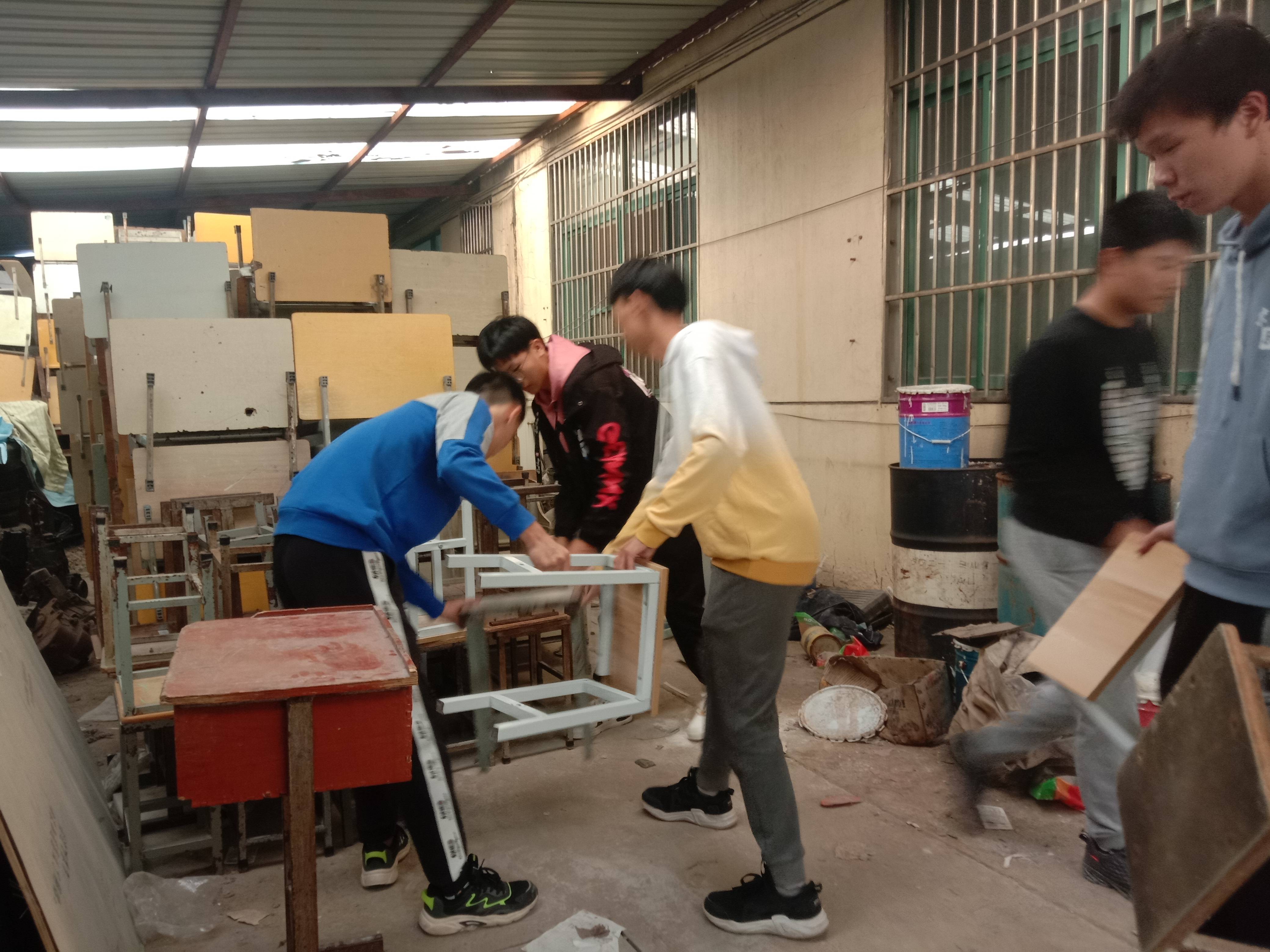 物流管理学院新学期教室搬迁后有一百多张桌椅更换剩余,经与资产管理处联系后需搬迁集中存放点。1013日下午,学院召集每个班级男生帮忙搬运,每班男生数量虽少,但每个班级学生都自告奋勇热心帮忙搬运。因数量较多,学生来回几趟,不辞辛苦,齐心协力帮忙将桌椅全部搬运到位。通过此次搬运,在学生中进一步弘扬奉献、友爱、互助、进步的志愿精神