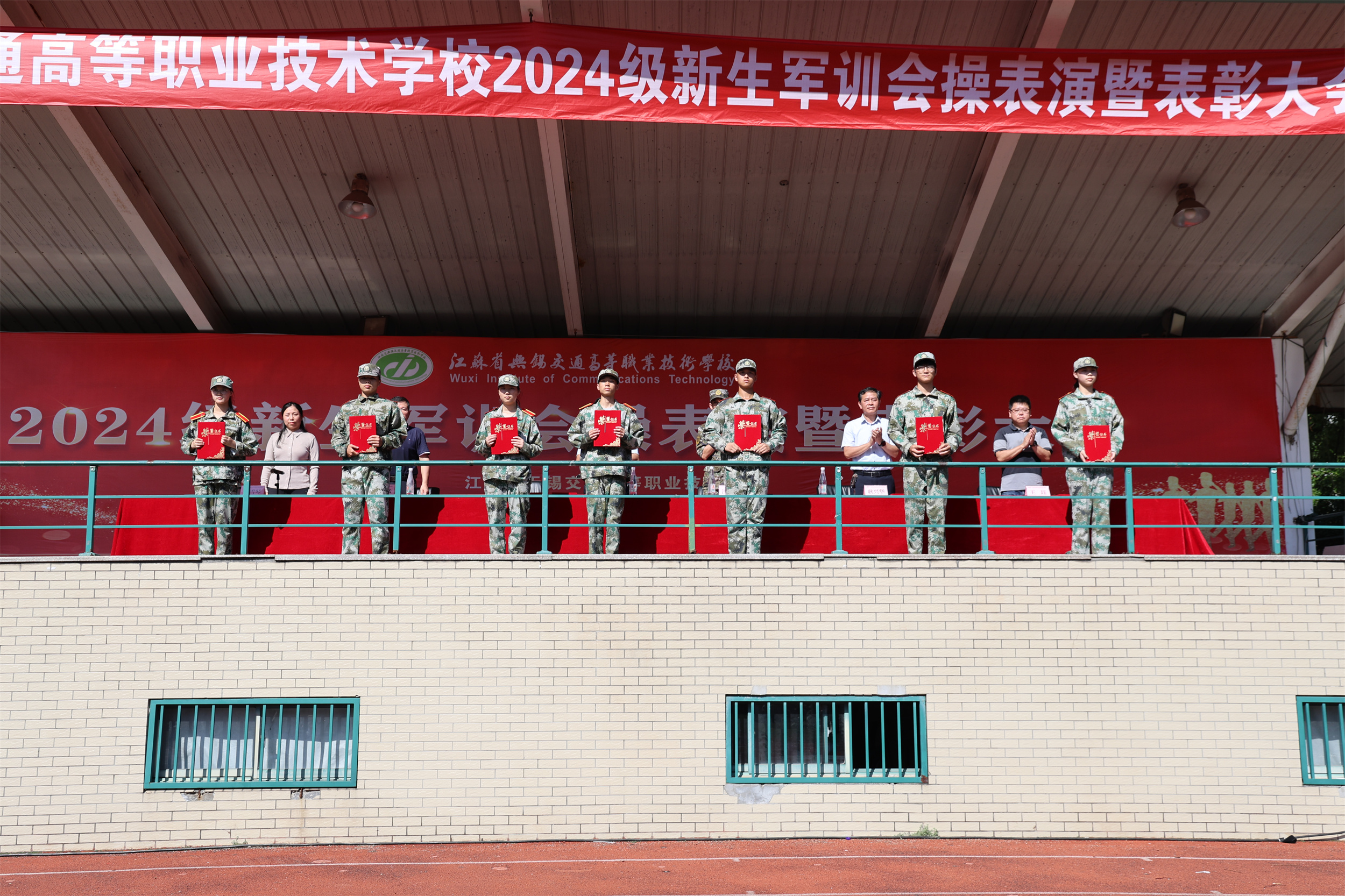 耿兴华宣读了《关于表彰2024年军训先进集体和先进个人的决定》,27个宿舍获“内务整理优胜奖”荣誉称号,16个班级获“板报评比优胜奖”荣誉称号,12个班级获“军歌比赛优胜奖”荣誉称号,13个班级获“队列评比优胜奖”荣誉称号,宋佳乐等227名同学获“先进个人”荣誉称号。全体校领导为先进集体和先进个人颁发荣誉证书。