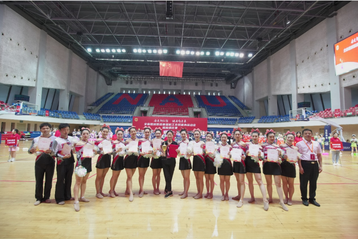 9月21日,2024年江苏省教科系统首届职工全民健身运动会啦啦操比赛在南京农业大学(卫岗校区)开幕,省内教科系统11支代表队176名运动员参加比赛。我校体育老师夏琪被选为直属在锡教育工会联队的成员,参加集训并参赛,在赛场上参赛老师们展示出高水准的编排、高难度的技术动作以及整齐划一的团队配合,通过规定啦啦操与自选啦啦操两套专业的成套展示,最终荣获季军。