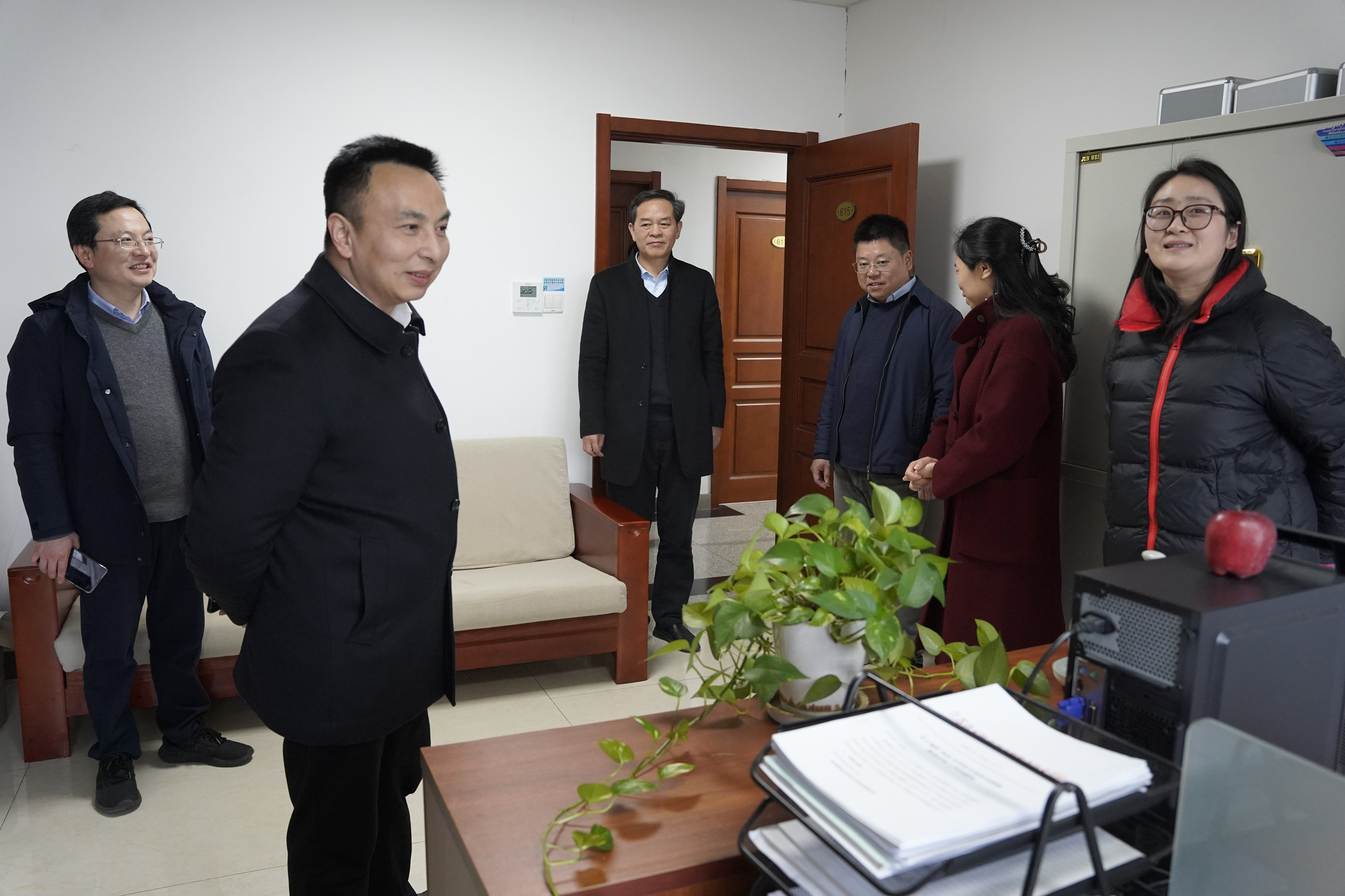 2025年2月17日,新学期教职员工集中返岗的首日,学校党委书记、校长李进率全体校领导班子成员,深入各学院及职能部门,依次走访锡澄校区与钱荣校区,亲切慰问节后回归岗位的教职员工。在慰问期间,校领导班子成员向全体教职员工送上了新春的美好祝愿与新学期的诚挚问候,全面了解新学期各项筹备工作的具体进展。