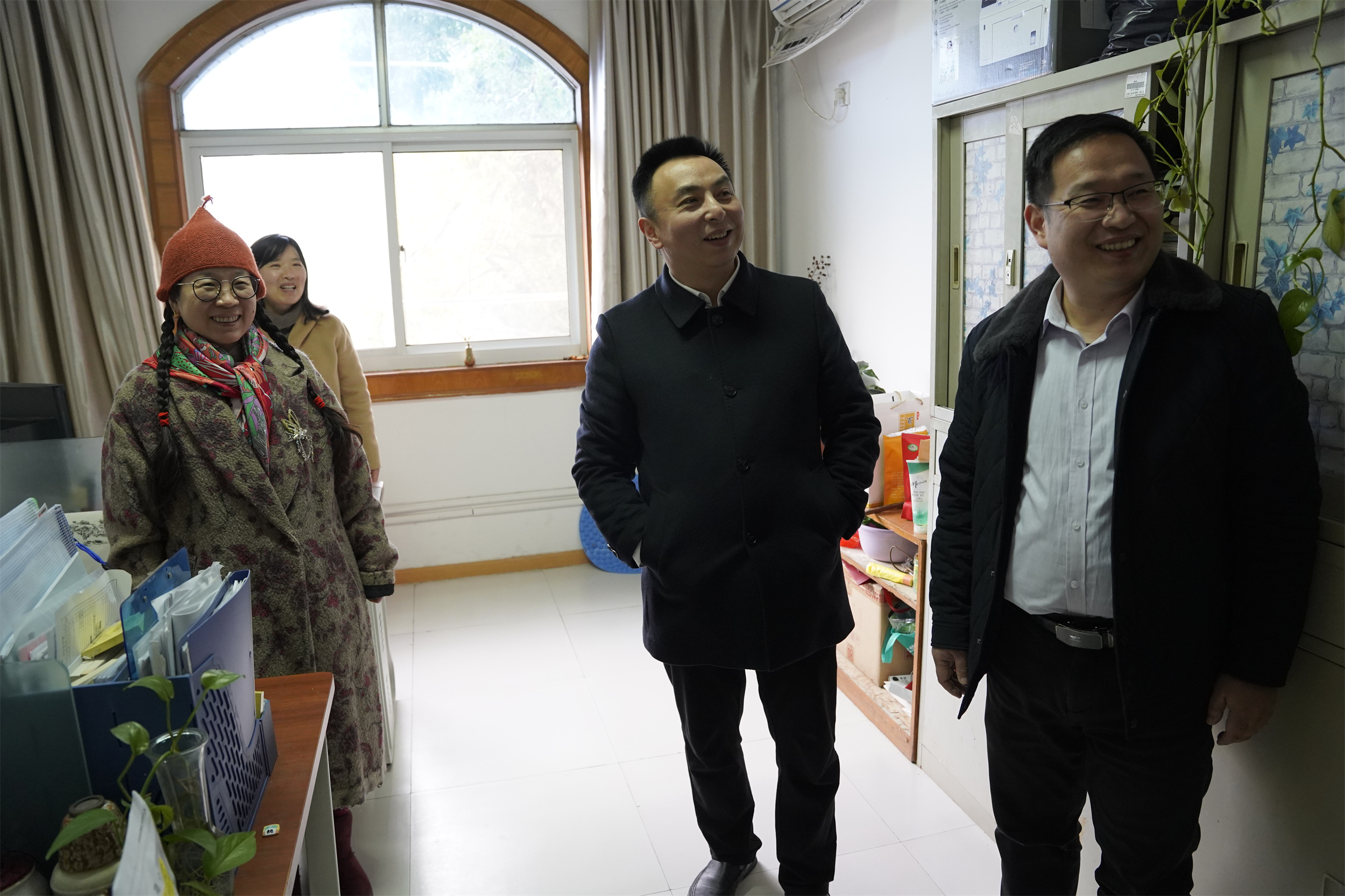 每到一处,校领导都会向坚守岗位的教职员工致以节日的问候,一声声“新年好,给大家拜年了!”“祝大家身体健康、工作顺利!”“假期加班,大家辛苦了!”,情真意切,关怀备至。校领导与教职员工深入交流,详细询问假期生活情况与工作安排,对全体教职员工过去一年的辛勤付出表达诚挚感谢。