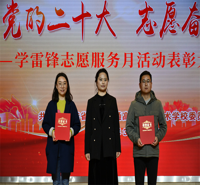会上还表彰了学雷锋志愿服务月“优秀志愿者”。优秀志愿者代表、校青年志愿者协会负责人闫春阳发言中分享交流了在志愿服务中的经验与收获,号召同学们向身边的“雷锋”学习,做有益于社会的时代新人。