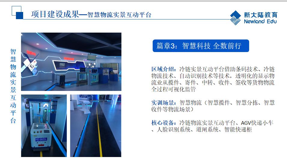 实训基地严格按照建设方案组织建设,精心施工,精益求精,追求卓越,已建成物联网关键技术实训室、智慧物流实训室、物联网综合应用实训室、智能交通实训室以及交通物联网技术综合展厅。综合展厅主要由开启智慧之路(综合可视化平台)、智融科技全数前行(智慧物流)、智控互联跨界融合(识别系统、智慧出行畅想生活(五峰山智慧大桥)、智能物联 创造无限(智慧路口)、智融智联智控慧行(智能快递)、智慧城市(交通大沙盘)、智慧护栏、智慧灯杆、文化长廊等部分组成,实训基地整体氛围极具现代科技感。