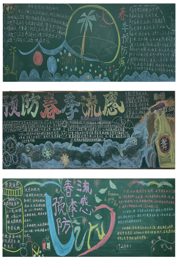 活动期间各班积极参与,黑板报设计精美、预防流感传染病知识内容丰富。通过黑板报的宣传,学生们对流感有了充分的认识,各班立即行动起来,勤洗手、勤开窗户、勤通风换气,发现咳嗽、打喷嚏等呼吸道感染症状及时就医。在学院营造了“预防流感”的良好氛围,对提高师生的自我保护意识和防病能力具有重要意义。