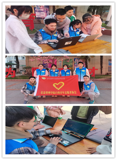 为了积极践行雷锋精神,培养同学们乐于助人、甘于奉献的精神品质。3月15日下午,信息管理学院的志愿者们在正德楼楼下,积极发挥专业优势,帮助我校师生免费维修电脑、重装系统、解答电脑方面的疑问,传承雷锋无私奉献的精神。