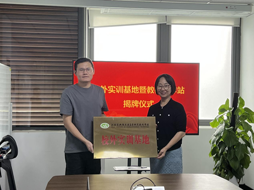 调研期间,学校向澳鹏公司授“教师企业工作站”、“校外实训基地”铜牌。