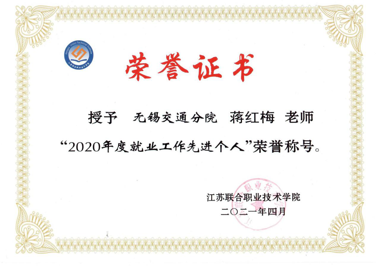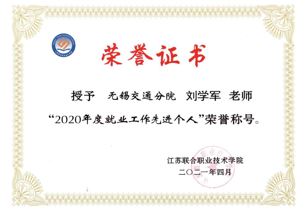 “2020年度就业工作先进个人”荣誉称号。