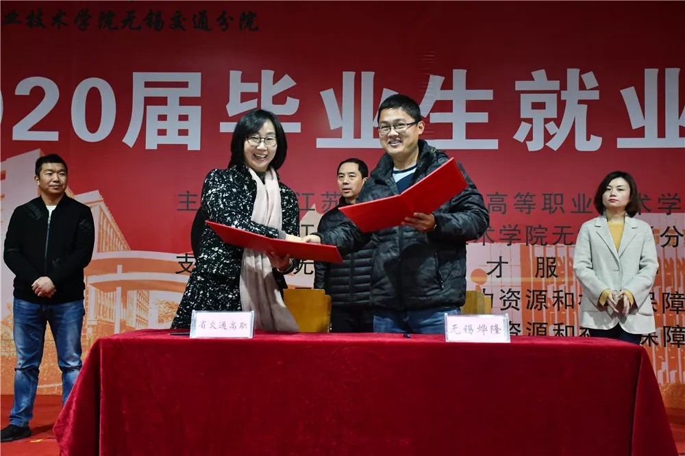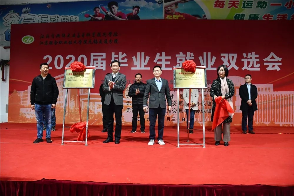 启动仪式上学校领导与苏交科集团股份有限公司、一汽解放无锡柴油机厂、无锡汉神电气股份有限公司三家企业分别签订校企合作协议,与无锡汉神电气股份有限公司、菲尼萨光电通讯科技有限公司举行“校企合作示范基地”仪式。