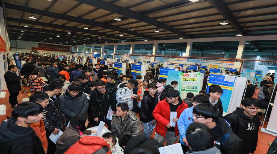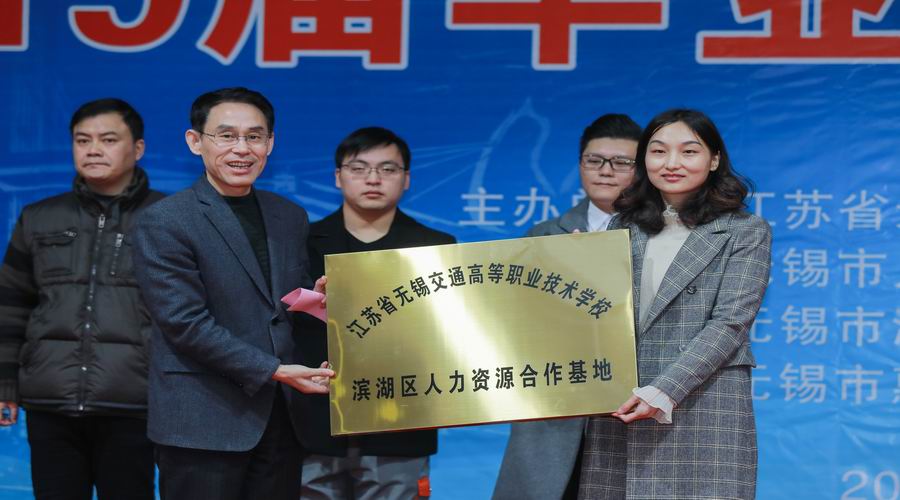2018年12月8日,2019届毕业生就业双选会在学校动感活动中心隆重举行。无锡市人才服务中心副主任祖炎、无锡市滨湖区人力资源与社会保障局副局长周小舟、无锡市惠山区人力资源与社会保障局党委委员、惠山区人力资源管理办公室主任奚静娟、江苏扬子江船业集团人力资源科副科长茆宏兆、苏交科集团股份有限公司检测研究院人事部经理夏鹏飞、上汽大通汽车有限公司无锡分公司人事部经理孙志科、江苏满运软件科技有限公司人事部经理张涛、菲尼萨光电通讯科技有限公司人事部经理金波、无锡凯迩必拓普减震器有限公司人事部部长何俊、学校校长陆春其等领导和企业代表共计千余人出席启动仪式。学校校长陆春其致辞,与会代表、毕业生代表分别发言。滨湖区人力资源与社会保障局授予我校“滨湖区人力资源合作基地”,现场进行了签约并颁发了铜牌。启动仪式由学校副校长耿兴华主持。