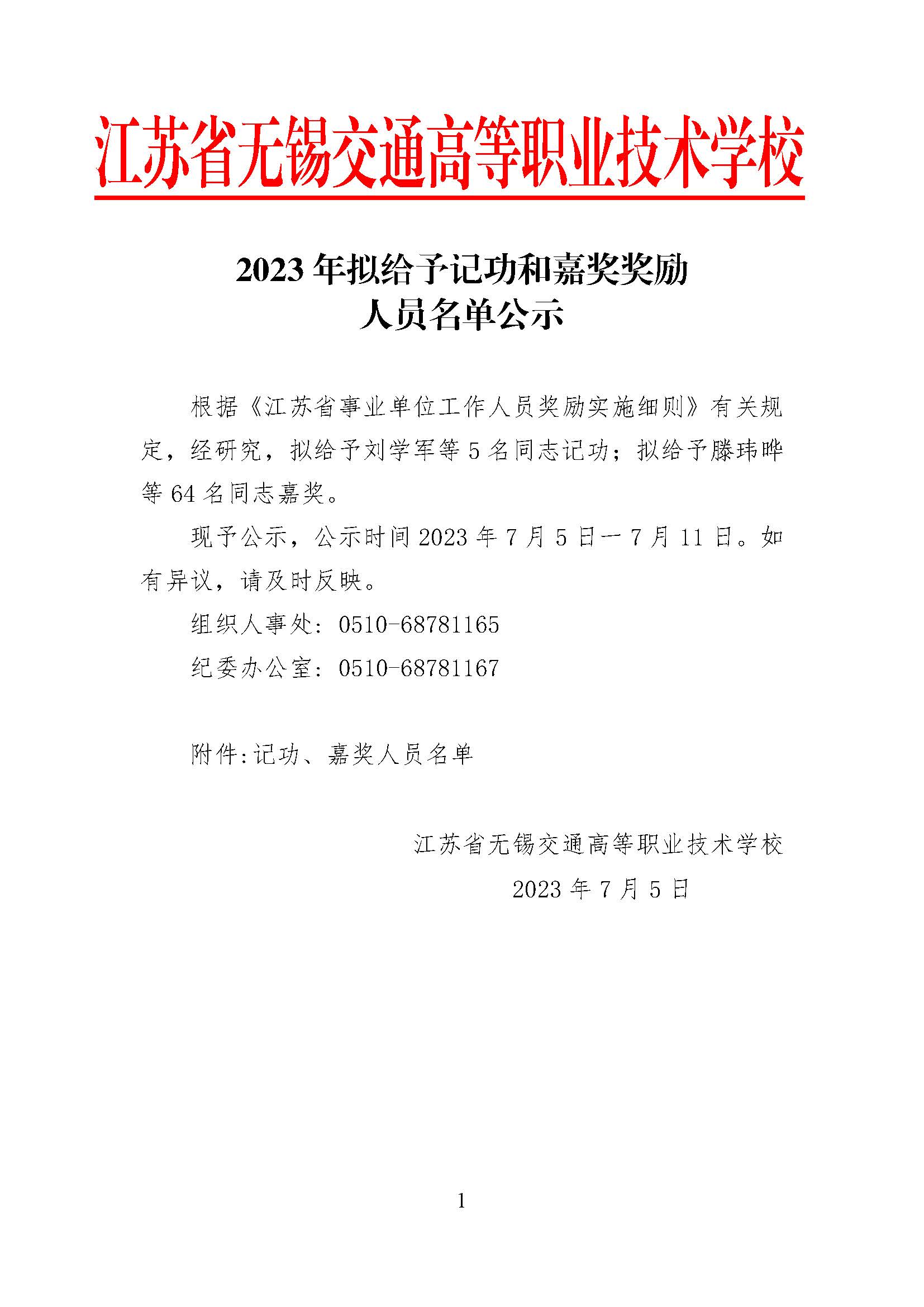 2023年拟给予记功和嘉奖奖励人员名单公示