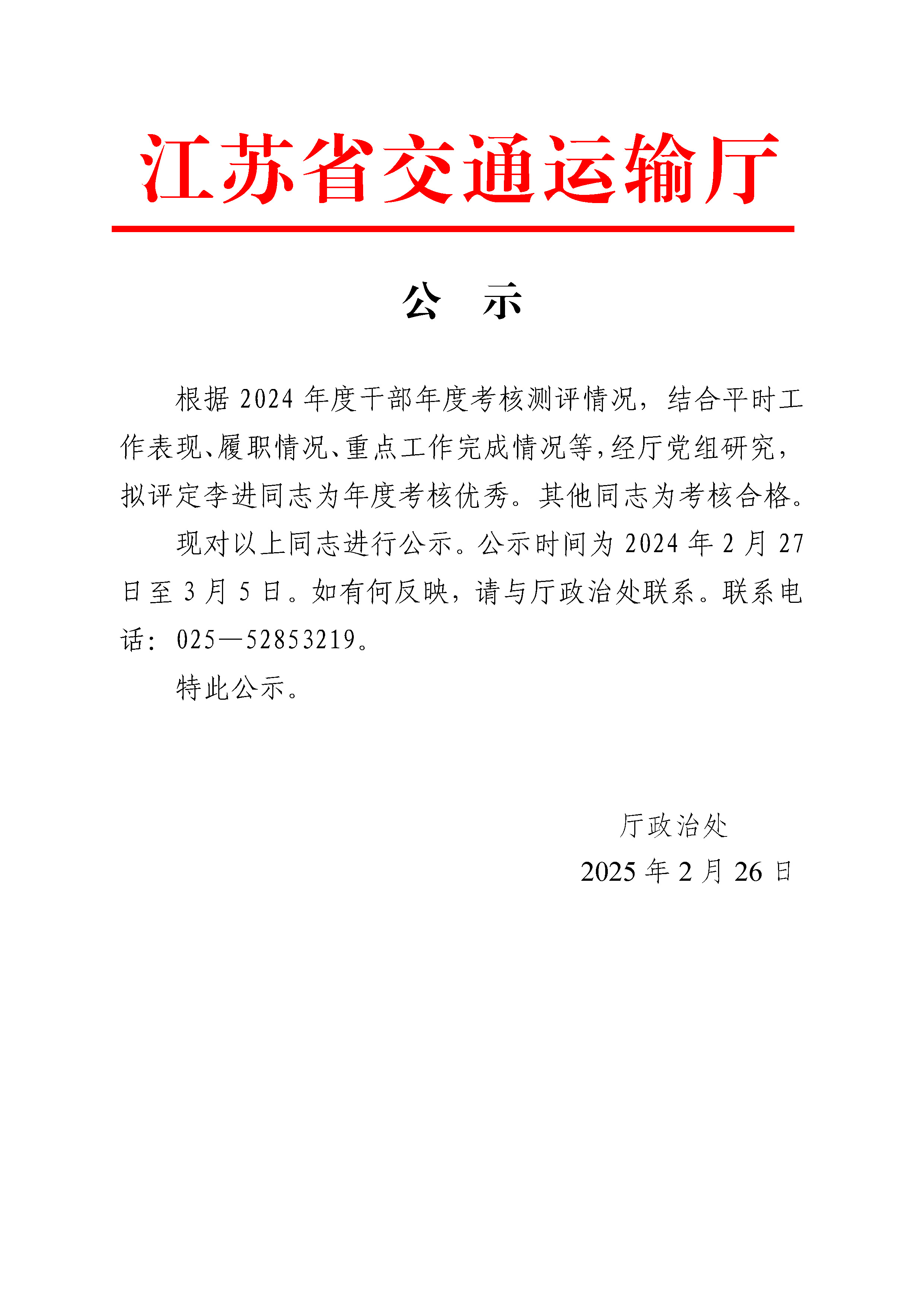 2024年度考核优秀等次人员名单公示