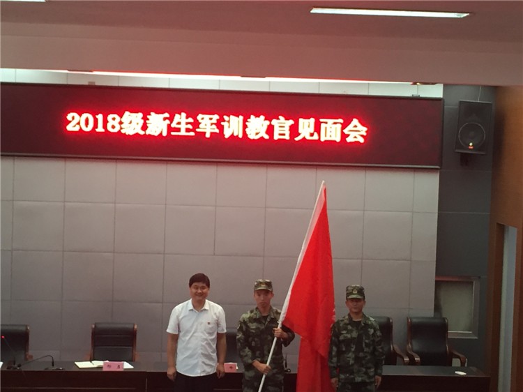 最后邢校长代表学校向李峰少校授“军训团”团旗,学校2018级新生军训正式拉开帷幕!