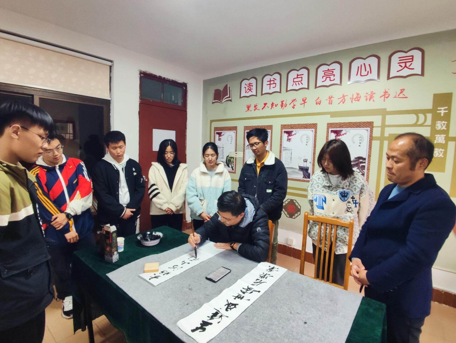 2023年4月6日,学校翰墨书社与读书会联合开展对联探寻与书法鉴赏活动。翰墨书社孙炎老师、读书会徐福义、金晶老师和部分社团成员参加了本次活动。