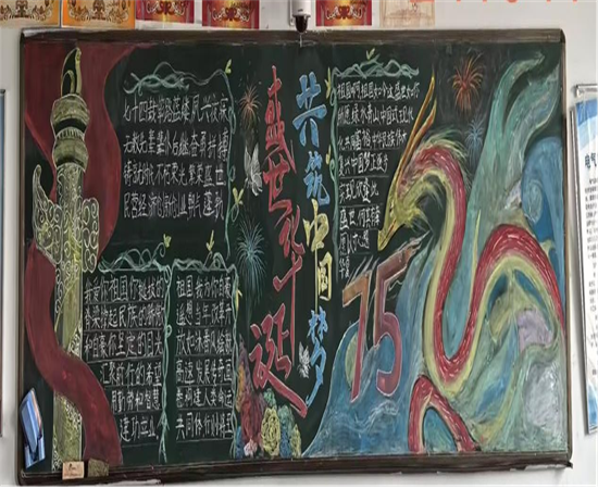 各班精心选材,细心编排,以画衬字,以图配文,同学们发挥想象用心描绘,一张张手抄报、黑板报都别有风采,展现出我校学生良好的精神风貌和对祖国母亲深深的祝福。