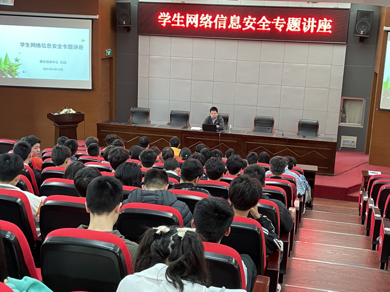 图文信息中心王珏主任通过校园网络信息安全形势、网络信息安全防范对策、个人信息安全防护和网络安全法解读四个方面,结合勒索病毒、网络诈骗等真实案例,让同学们真切地体会到了保护个人信息安全的重要性,宣传普及了网络安全知识,增强了网络安全意识和安全防护技能。
