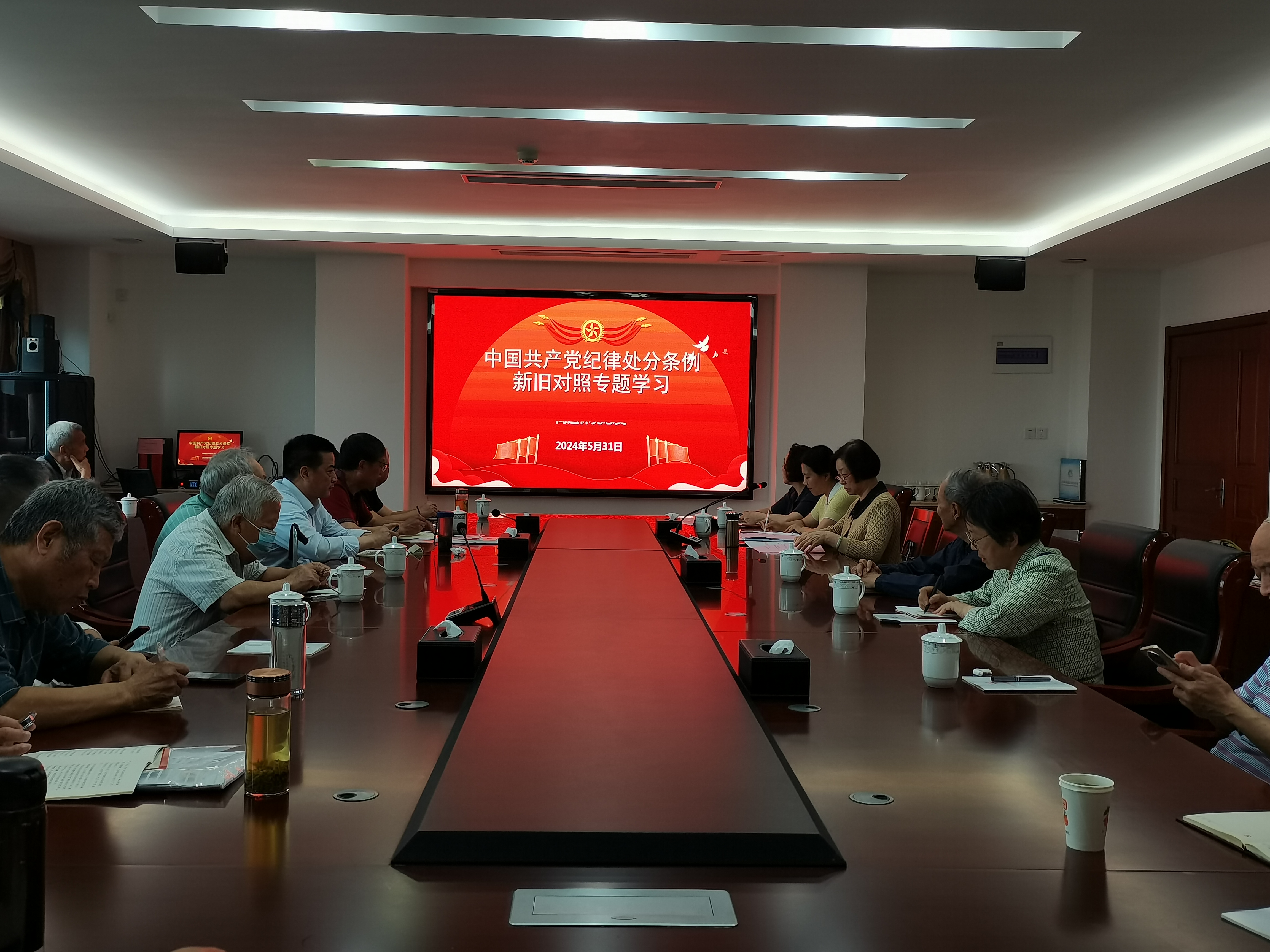 为进一步学习宣传贯彻新修订《中国共产党纪律处分条例》(以下简称《条例》),全面准确领会《条例》中各项纪律规定,确保把《条例》精神传达到每一名党员,推动纪律建设不断取得新成效,2024年5月31日上午,离退休党总支书记毛兰霞同志在致远楼512会议室为全体离退休党员同志上专题党课,讲授新修订的《中国共产党纪律处分条例》。